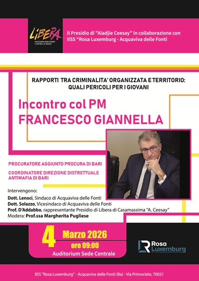 il giorno 4 marzo 2026 dalle ore 9.00 alle ore 11.00. un incontro col procuratore antimafia dott.